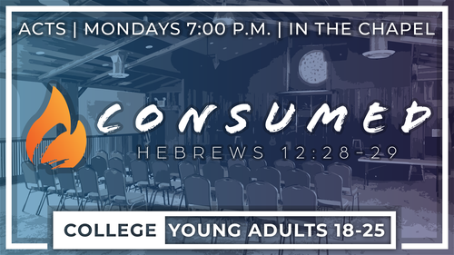 We meet in the Wooten Chapel Monday Nights at 7pm for bible study for all of our college students and young adults 18-25